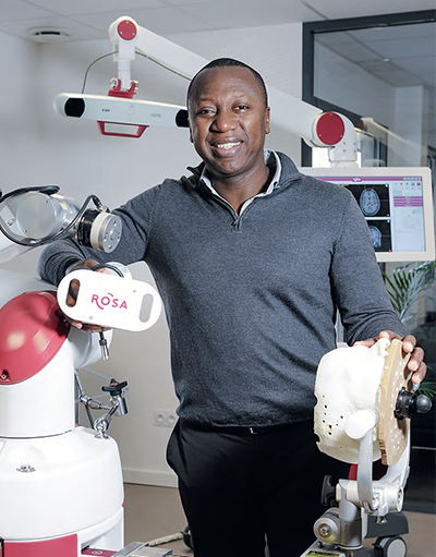 À 48 ans, le Franco-Béninois n’a pas fi ni de bousculer le secteur de la robotique médicale. Visionnaire, persistant, combatif, c’est aussi un entrepreneur hors pair. Rencontre et interview à Paris avec celui que le métier compare souvent à Steve Jobs ou à Mark Zuckerberg.
