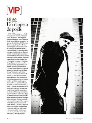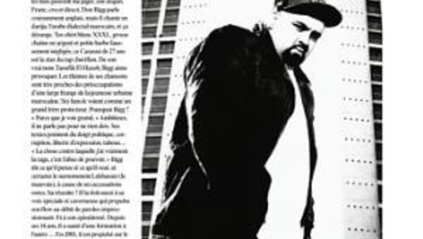 Sa réussite ? Il la doit aussi à sa voix spéciale et caverneuse qui propulse son flow au débit de paroles impressionnant. Et à son opiniâtreté. Depuis ses 14 ans, il a sauté d’une formation à l’autre … En 2001, il est propulsé sur le devant de la scène avec son ex-groupe, Mafia C, mais il décide de se produire en solo et, en 2006, son premier album, Mgharba ’tal Mout, fait un tabac. Bigg est plébiscité par une grande partie du public marocain, des médias nationaux et internationaux. Son nouveau single, « Itoub », a été enregistré à Los Angeles : l’un des titres phares de son nouvel album, Byad ou K7al (Noir et blanc) qui sortira dans quelques semaines. Bigg à l’abordage de la scène américaine ? « Je veux surtout leur montrer qu’on peut débarquer du tiers-monde et se débrouiller. »