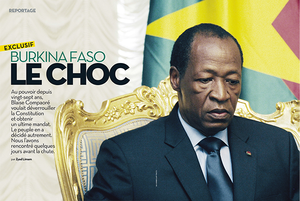 Jeudi 30 octobre. En quelques heures, l’un des régimes les plus stables du continent est emporté par une foule déchaînée, galvanisée, qui brûle tout sur son passage, les symboles du régime, les maisons des fidèles, l’Assemblée nationale, la télévision (ce qui prive les autorités du contact avec l’opinion)… Les émeutiers marchent sur le palais présidentiel de Kosyam. Décidés à obtenir la tête de Blaise Compaoré, tout-puissant chef de l’État depuis 1987, depuis vingt-sept ans. Au cœur de la tempête, la fameuse révision constitutionnelle qui devait être votée par le Parlement en ce terrible jeudi. La révision de l’article 37, qui devait faire sauter le verrou de la limitation des mandats et ouvrir la voie à un nouveau (et dernier) quinquennat pour le président du Faso. Avec une majorité des trois quarts des députés assez largement acquise, le texte aurait dû passer sans avoir recours au référendum, ultime espoir des opposants.
