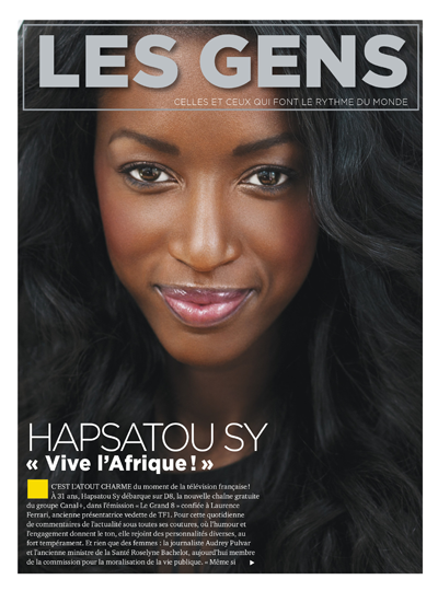 C’EST L’ATOUT CHARME du moment de la télévision française! À 31 ans, Hapsatou Sy débarque sur D8, la nouvelle chaîne gratuite du groupe Canal+, dans l’émission « Le Grand 8 » confiée à Laurence Ferrari, ancienne présentatrice vedette de TF1. Pour cette quotidienne de commentaires de l’actualité sous toutes ses coutures, où l’humour et l’engagement donnent le ton, elle rejoint des personnalités diverses, au fort tempérament. Et rien que des femmes : la journaliste Audrey Pulvar et l’ancienne ministre de la Santé Roselyne Bachelot, aujourd’hui membre de la commission pour la moralisation de la vie publique. « Même si je suis une grande télévore, je ne viens pas du monde de la télévision, donc je n’avais pas la prétention de venir me présenter. C’est l’équipe de Laurence Ferrari qui est venue me chercher », précise d’emblée Hapsatou. Un nouveau défi pour elle, et de taille, dans un monde totalement inconnu, même si la jeune femme a déjà une expérience du petit écran : « “Le Grand 8” m’avait repérée avec l’émission “L’Inventeur”, sur M6, où j’ai été membre du jury.