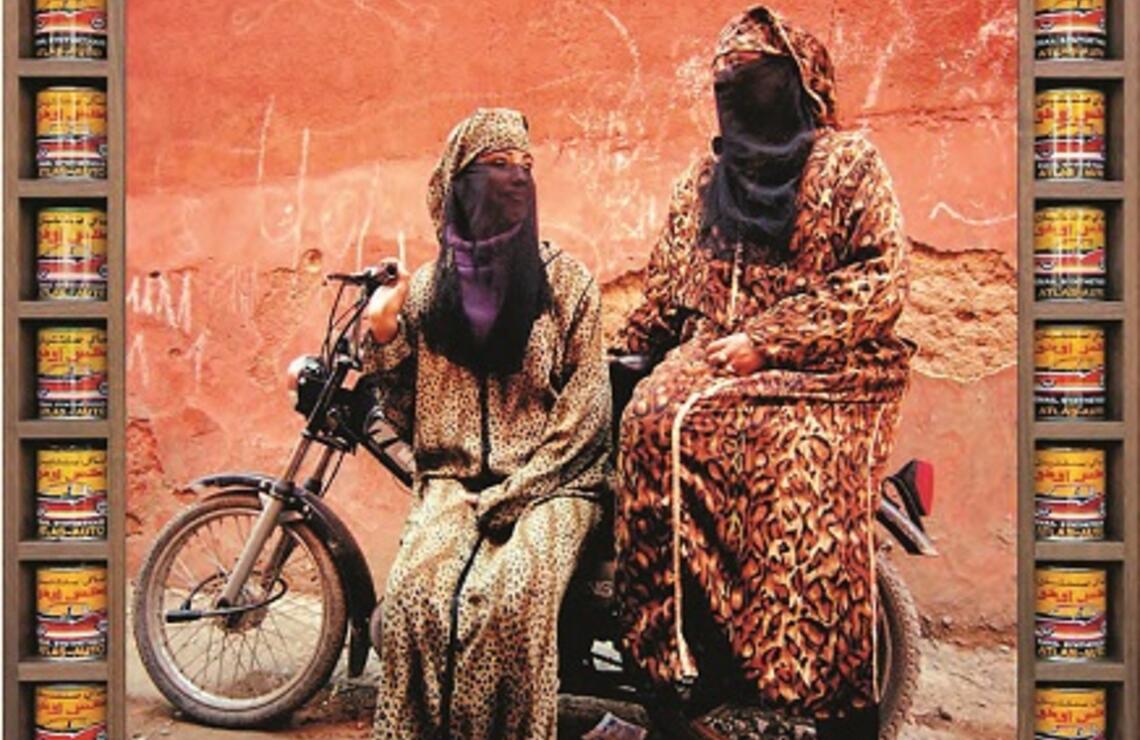 « Kesh Angels », c’est le titre d’une œuvre d’art qui a en effet inspiré un corpus de photographies dans sa globalité. « Kesh » renvoie au diminutif de Marrakech, et forme un jeu de mots avec « Angels » qui renvoie aux anges de l’enfer, ces gangs de motards très connus. Cela documente véritablement ce qui se passe au cœur de la ville. Par exemple, dans la médina, comme les rues sont très étroites et que les voitures ne peuvent pas passer, les gens y circulent naturellement en mobylette. Je l’ai interprété à ma façon, en mettant en scène mes amis, mes voisins, et principalement des femmes car je trouvais que cela contrastait avec les stéréotypes occidentaux qui auréolent les femmes musulmanes. Nombre d’entre elles sont en fait comme Karima, icône locale qui est le sujet de plusieurs photographies : cette artiste pratique l’art du henné avec ses amies sur la principale place de Marrakech, Jemaa el-Fna.