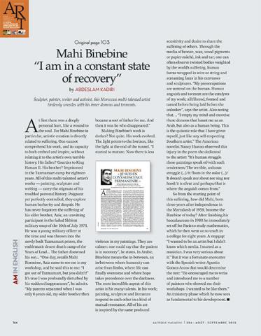 Sculptor, painter, writer and activist, this Moroccan multi-talented artist tirelessly wrestles with his inner demons and torments.