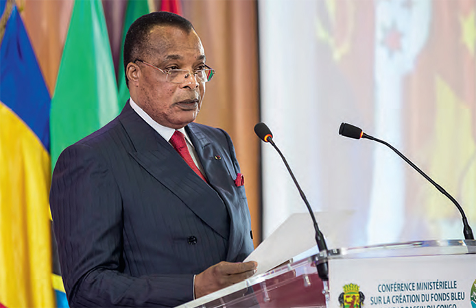 DES COMPENSATIONS INSUFFISANTESPATRICK ROBERT. Le président Denis Sassou-Nguesso à la conférence de signature pour la création du Fond Bleu pour le bassin du Congo, le 9 mars 2019. Il n’y a guère besoin de défricher de vastes superficies pour nuire à Dame Nature.
