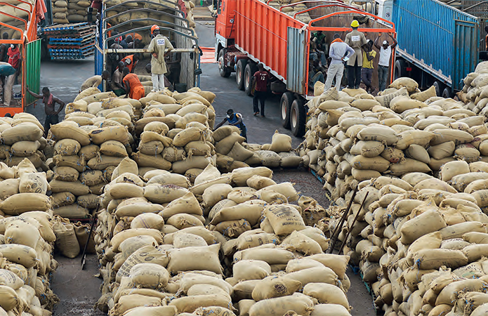 NABIL ZORKOT. Usine de cacao à Abidjan, en Côte d’Ivoire. Les géants de l’agroalimentaire se sont engagés à ne plus acheter de fèves provenant de forêts classées.