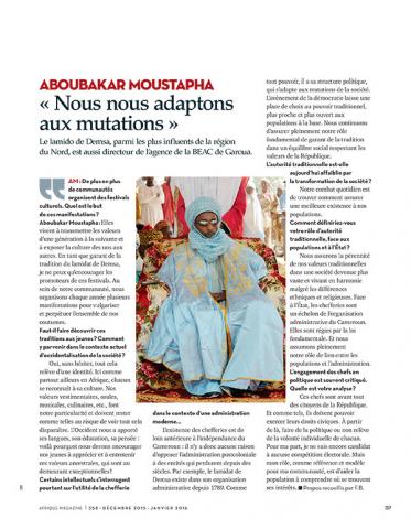 L’existence des chefferies est de loin antérieure à l’indépendance du Cameroun : il n’y a donc aucune raison d’opposer l’administration postcoloniale à des entités qui perdurent depuis des siècles. Par exemple, le lamidat de Demsa existe dans son organisation administrative depuis 1789. Comme tout pouvoir, il a sa structure politique, qui s’adapte aux mutations de la société. L’avènement de la démocratie laisse une place de choix au pouvoir traditionnel, plus proche et plus ouvert aux populations à la base. Nous continuons d’assurer pleinement notre rôle fondamental de garant de la tradition dans un équilibre social respectant les valeurs de la République.