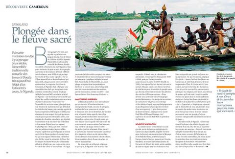 Bwanganga ! » Ce mot, qui signifie « prudence » en langue douala, était le thème de l’édition 2014 du Ngondo, l’Assemblée traditionnelle annuelle des Sawas, fondée vers 1830 à l’initiative du chef Ngando a Kwapour maintenir la paix au sein de ce peuple, qui forme la descendance d’Ewale a Mbedi (son fondateur, vers 1678) et qui partage les rituels de l’eau (sawa signifie « rive »). S’il est aujourd’hui un festival culturel qui rassemble, chaque année entre novembre et décembre, la vingtaine de tribus du Sawaland, le Ngondo était à l’origine une Assemblée des chefs qui remplissait trois missions essentielles, comme l’explique Adolphe Sammet Bell, secrétaire général du Ngondo : une mission juridictionnelle qui réglait les conflits, notamment commerciaux,et dont les décisions s’imposaient sur l’ensemble du territoire sawa ; plus politique, une mission de représentation qui défendait les intérêts des Sawas, par exemple auprès dela cour impériale d’Allemagne en 1902 pour dénoncer le non-respect du traité germano-douala par la partie allemande ; enfin, une mission de chambre consulaire, qui régulait le commerce et le troc entre les différentes tribus sawas. Réputé pour sa sagesse, le chef Ngando a Kwa, qui avait constaté que les palabres étaient interminables, imposa rapidement que le Ngondo se tienne sur le lit du fleuve pendant la marée basse. Ce qui contraignait l’Assemblée à délibérer et à décider avant la remontée de l’eau. Sur les berges du fleuve Wouri, les cérémonies débutent à l’aube par une communion entre les chefs des tribus et les ancêtres. « Il s’agit pour nos chefs de rendre compte à nos aïeux et de prendre leurs instructions pour les mois qui viennent », explique Adolphe Sammet Bell. Avant la fin de l’Assemblée, un jeune plonge en apnée dans les profondeurs du fleuve et en sort (sec, selon la légende) avec les recommandations des ancêtres, parfois étonnantes, comme en 2013 : « Les Sawas doivent faire beaucoup d’enfants ».