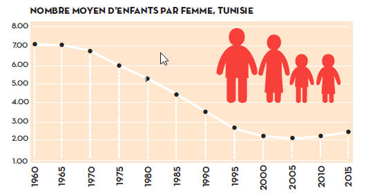 Soixante ans et une révolution plus tard, malgré les changements de modes de vie, le chômage, le niveau d’éducation et l’urbanisation, la Tunisie, avec une fécondité de 2,5 enfants par foyer (lire p. 27), est prise dans « une contre-transition démographique, comme l’Égypte et l’Algérie », selon Youssef Courbage, directeur de recherches à l’Institut national des études démographiques (Ined). Un renversement de tendance et une réaction de type nataliste qui interpellent. La hausse actuelle n’est plus justifiée comme dans les années 80 par la baisse de la mortalité infantile ; pour l’INS, le baby-boom s’explique par l’augmentation du nombre de mariages au moment où les époux, natifs des années 70-80, sont en âge de fonder une famille. « Le temps de boucler les études, de trouver une stabilité professionnelle, fait que l’on se marie beaucoup plus tard. Mais l’horloge biologique presse les femmes à procréer » raconte Imène, pharmacienne de 38 ans qui vient d’avoir son premier enfant et projette d’en faire un autre avant ses 41 ans.