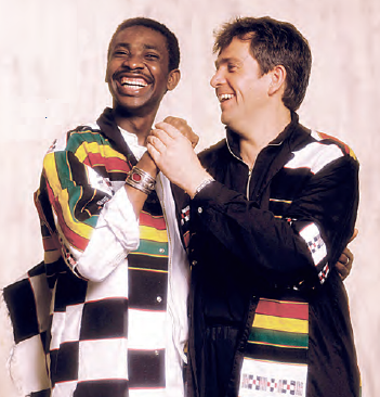 Youssou N’Dour et Peter Gabriel, en 1989, réunis autour de l’album Shaking the Tree. HARARI GUIDO